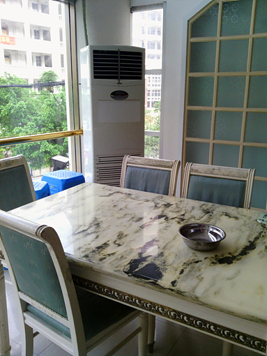 ????其實好的就餐環境是吸引我常駐此地的最大原因。明亮的食堂,干凈的地板,漂亮的餐桌和靠背椅,還有,我最鐘情的落地窗,在這里吃飯簡直是一種享受!和一樓不同的是,這里明顯更干凈整潔。