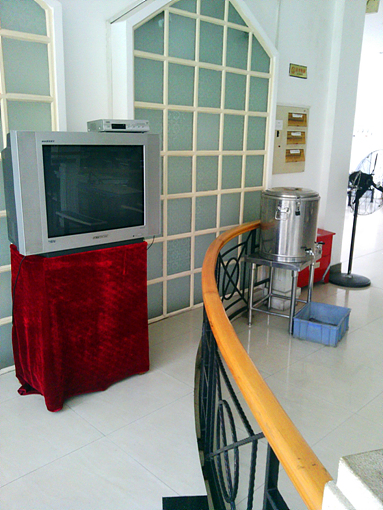 ????梧州學院新食堂,坐落于A6宿舍樓和A7之間,背靠青山,面朝A5。洋樓樣式,晚上開著景觀燈還真挺美——大家普遍反映在收到的學院錄取通知書上的照片拍的很漂亮,有一種心神往之的感覺,來了以后有點被騙的感覺,它也是Just so so。一共設有兩層的餐廳。一樓二樓皆有飯菜出售(早餐時間只有一樓有實物供應),一樓還設有小賣部,有各類零食雪糕面包等等。二樓因其就餐環境整潔優雅,還設有空調、大型落地電風扇,超大餐桌,設有會賓餐區——通常學院宴請客人、表彰運動員、接待外國交流生就設在食堂二樓。