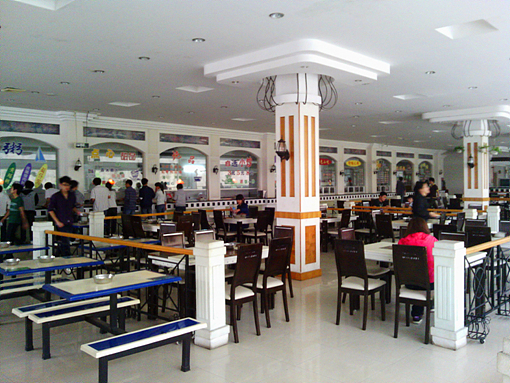 ????在學院北區,個人比較常去的是新食堂,這里就餐環境好,飯菜可口,受很多人的青睞。舊食堂只去過一次,那里的環境給我留下十分深刻的印象——簡直是在濕漉漉的菜市場中進食,原本應該最美麗的時光變成了讓人局促不安的難熬的黑色時刻。西區食堂,人少,菜式豐富,各種小吃讓人眼花繚亂,是我魂牽夢縈的地兒。下面為各位看官主要介紹新食堂,竊以為那代表了梧州學院的食堂業的頂峰——至于傳說中的在建的A11的食堂,好吧,你懂的,至今也許還沒有誕生到圖紙上。