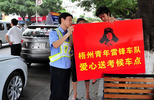 ????梧州交警支隊(duì)連續(xù)第8年與梧州電臺聯(lián)合舉辦愛心送考活動,今年梧州交警支隊(duì)特別劃定8個(gè)臨時(shí)停車點(diǎn),供愛心送考車輛定點(diǎn)接送考生。