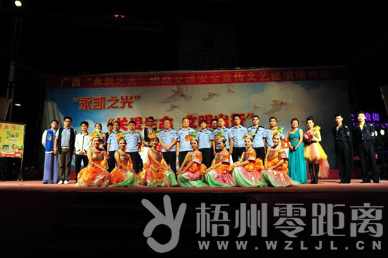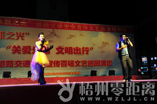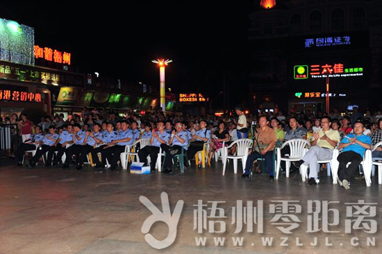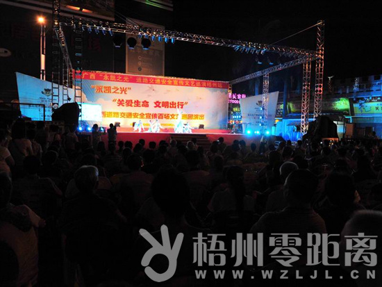 6月19日晚,由梧州市交警支隊承辦的演出在我市鴛江麗港廣場舉行。