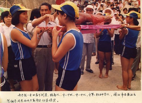 ????“我們自己都沒有想到,我們會在比賽中獲得第一名?!秉S燕瓊想起當年激烈的比賽過程仍難掩激動,“放龍”的槍聲響起,她敲起了“鐺鐺鐺”的鑼聲,指揮著隊員全速向前沖,整齊劃一的船槳劈波斬浪,梧高女子隊一路領先,不料比賽中段被對手船隊齊頭趕上,很長一段時間里持續膠著狀態,眼看兩支隊伍勝負難分,幸好在后半段有經驗的艄公為梧高女子隊搶到了有利的水路,她們才能順水而上。