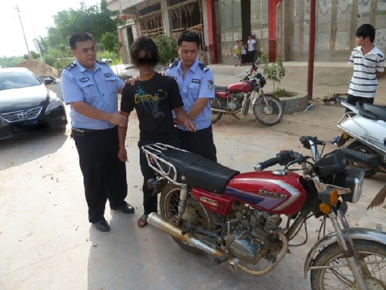 6月20日14時許,群眾歐某向太平派出所報案稱,其停放在太平鎮浮田村邊的一輛價值4000元的力帆牌男裝摩托車于6月19日下午18時許被人盜走。接到報案后,該所根據事主提供的線索深入研判分析,并立即組織民警開展巡邏、訪查等工作,經過兩個多小時的細致訪查,20日下午15時許,民警快速鎖定了嫌疑人饒某鋒。16時許,該所立即組織警力埋伏在健安橋頭伏擊守候,17時,嫌疑人饒某鋒出現了,就在他準備通過橋頭的那一瞬間,四、五名民警一躍而起,成功將涉嫌盜竊摩托車的饒某鋒抓獲,饒某鋒被人贓俱獲,當場伏法認罪。