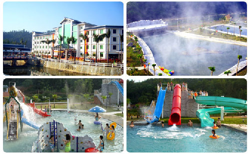 ????金水臺溫泉座落在中國禪宗六祖惠能的故鄉廣東新興縣、與開平市、高明市、鶴山市和云浮市四市交匯點。金水臺溫泉是國家AAAA級旅游景區,區環境優美,總投資人民幣逾5億元,占地面積680畝,度假村均以加勒比海風格設計建成,配有大型露天溫泉區,私家溫泉別墅70多套、豪華客房400多間, 大型國際會議中心、金水軒中餐廳、健康中心、大型水上樂園、高級歌舞廳、KTV包廂、特產超市、足球場、籃球場、網球場、釣魚場、燒烤場、戶外拓展訓練基地等。同時度假村被原生態山林圍繞,湖光倒影,景色迷人,到金水臺溫泉休閑、度假、養生、會議,不但可以飽覽這里優美的湖光山色,還可以以天然負離子清洗心肺,聆聽百鳥歡唱,其中滋味,須身臨其境而得之。