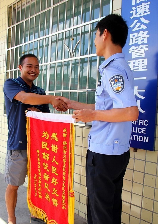 梧州零距離網訊(通訊員 李炎靜 石桂暉)“感謝交警王一杰冒著大雨熱情幫助我們排除困難。”這是陸川縣珊羅鎮駕駛員廖天冬送來的一封對梧州市公安局交警支隊高速公路管理一大隊感謝信的部份內容。