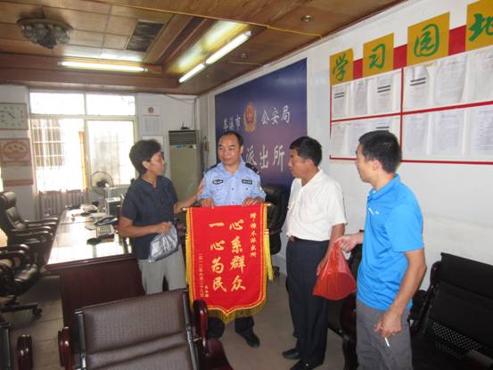 第二天剛上班,王玉萍就帶領她的一幫家屬興高采烈地來到樟木派出所,滿懷喜悅地遞上一面印著“心系群眾、一心為民”的錦旗送到樟木派出所劉達志所長手中,以表達對派出所民警和協警積極為民排憂解難的感激之情。 |