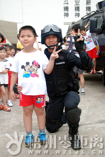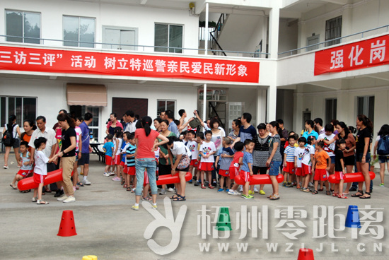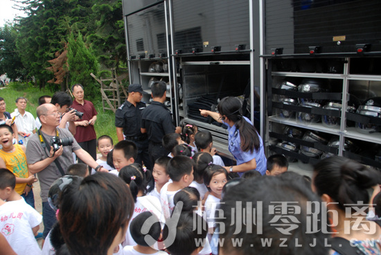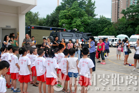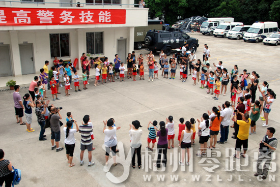 ??? 梧州零距離網訊(通訊員 李金鴻 楊順波)為了讓祖國的花朵能夠更直觀的感受警營文化,強化警察在兒童心中的正面形象,6月30日,特巡警支隊聯合“六一”幼兒園在特巡警支隊營地開展了一次“警營開放日”活動。特巡警支隊民警、幼兒園老師、學生以及學生家長100余人參加了此次活動。