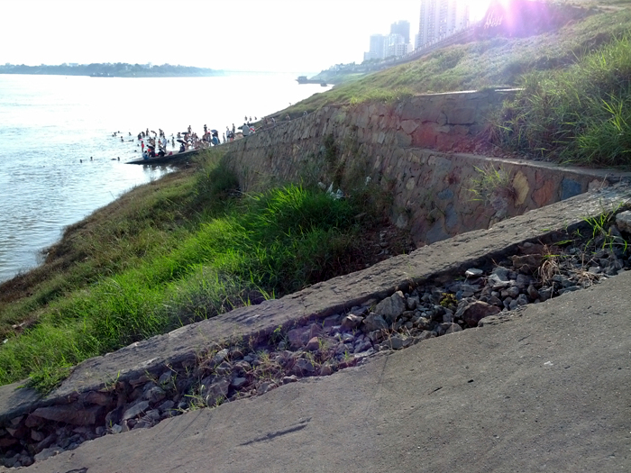 汛期時,類似上圖地勢的碼頭最危險,因為無法估量前后左右的水位是否一致。