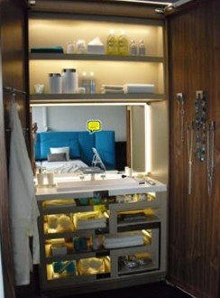毛巾、便衣、首飾、化妝用品甚至還有洗漱臺,千萬不要誤會這是化妝間,這只是未來衣柜為愛好整潔與美麗的您量身訂造的“清潔美容區(qū)”。