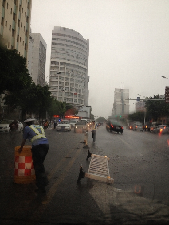 梧州零距離網(wǎng)訊(通訊員 蘇志文 吳嘉欣)7月18日下午2點40分左右,梧州市區(qū)突然下起暴雨,西堤一路紅會醫(yī)院對開處,機動車道中間近百米隔離護欄被狂風(fēng)吹倒,時值上班高峰期,市交警蝶山大隊民警發(fā)現(xiàn)后立即組織民警疏導(dǎo)交通,一邊安排民警將倒下的護欄移走,民警們冒雨近半個小時終于將護欄全部移到了路邊,順利地排除險情,恢復(fù)正常交通。