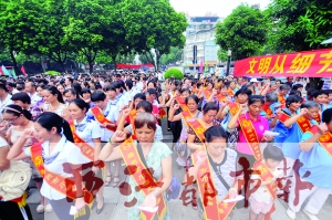 日前,“我為城市建設出份力 志愿服務在身邊”系列志愿活動啟動儀式在潘塘公園舉行。參加活動的志愿者們高舉右手宣讀誓詞。李鴻榮/攝