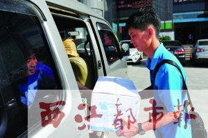 ????當天下午總共要把43箱礦泉水送到市內6個派送點。每到達一個點,黎藍揚都主動地上前搬運。一次搬兩箱,能加快運送的時間,但對于身材不算高大的黎藍揚,兩箱水的重量還是讓他稍顯吃力。但是,沒有過多的交談,也沒有一聲的抱怨,他總是默默地忙碌著。