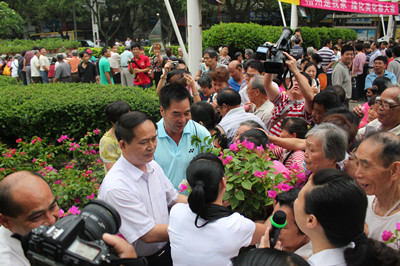 ????5月26日上午9點,梧州市創建國家園林城市系列活動“靚麗寶巾 美化家庭”市花寶巾花贈送活動在一中花圃內舉行,與贈花活動同時進行的還有創園知識和寶巾花種植知識咨詢活動?;顒幽康闹荚谪S富人民群眾物質文化生活、提高城市文化品位和普及市花寶巾花知識、增加市民對梧州市創建國家園林城市的認知。市委副書記全桂壽、市人大副主任莫永東、市政協副主席李桂珍等市領導參加活動,并親自向市民贈送寶巾花。整個活動共贈送寶巾花2000多盆。 莫卓昕(特約攝影通訊員)文/攝影