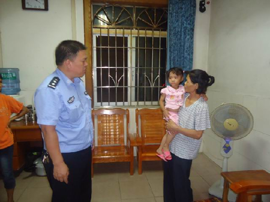近日,岑溪市公安局城南派出所值班民警們在轄區內巡邏時,在市廣場處發現一名大約4、5歲的女孩站在街上哭泣,旁邊無人看護。民警隨即上前詢問,小女孩一言不發,問其家庭情況,也不說話,民警便將該名小女孩帶回所內。到所后,城南所負責人潘永壽慢慢詢問小女孩,以穩定小孩的情緒,經過近1個多小時的詢問后,小孩名字叫鐘某,是和奶奶來玩的,得知小孩姓名后,城南派出所民警們即在戶籍管理系統查詢,經核實信息后,民警即聯系上該兒童的家人。