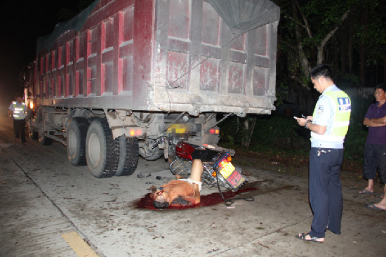 梧州零距離網訊(通訊員 胡紅 陸妙)7月20日晚,岑溪南渡往馬路善村方向二級公路近發生一起交通事故,一輛兩輪摩托車追尾撞上因輪胎漏氣停放在路右側的一輛大貨車尾部,造成摩托車駕駛人當場死亡。