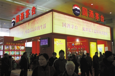 去年12月17日,在武漢舉行的第20屆中國食品博覽會上,茅臺展區(qū)打出“國酒茅臺”的招牌。圖/CFP
