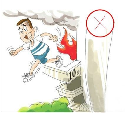 ????9. 逃生時(shí)。盡量采取保護(hù)措施,如用濕毛巾捂住口鼻、用濕衣物包裹身體。