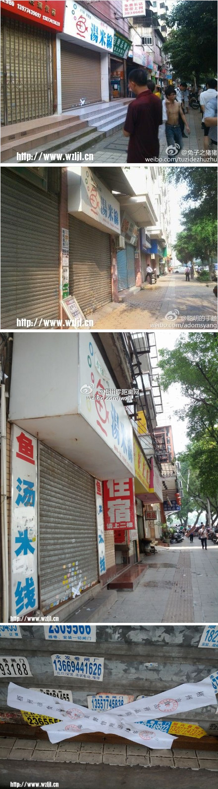 ??? 眾多網(wǎng)友拍攝“魚湯米線”連鎖飲食店被查封并發(fā)于新浪微博。(圖片來源:@聰明的丁喜 @兔子之豬豬 @一朵花肥兔)