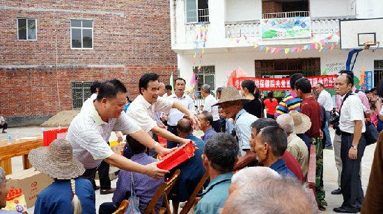愛心單位給三貴村五保戶送上慰問品。黃祎婧/攝