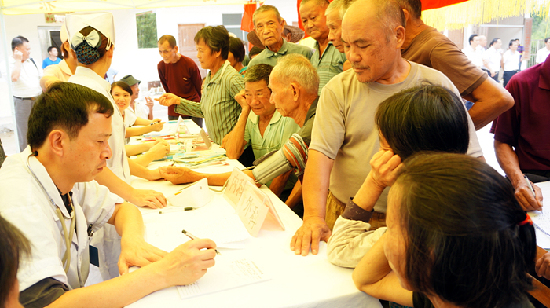 市婦幼保健院的醫(yī)護(hù)人員為村民開處方。黃祎婧/攝