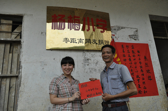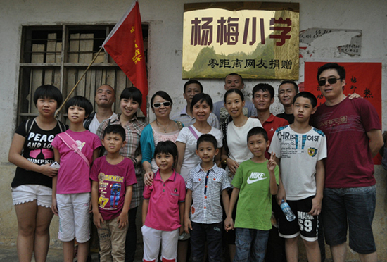 愛心網(wǎng)友在校牌前合影留念 萬立平/攝