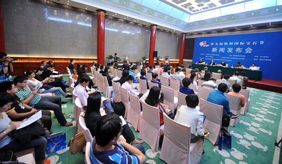 9月19日上午,第九屆梧州國際寶石節新聞發布會在北京釣魚臺國賓館舉行。孟亞西/攝