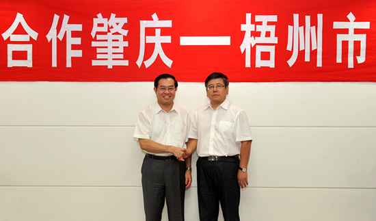 ?? 梧州日報訊(記者 陳貽澤) 9月24日下午,肇梧戰略合作第一次市長聯席會議在廣東肇慶市封開縣召開,隨著梧州市市長王凱和肇慶市市長郭鋒的手緊緊地握在一起,標志著肇梧合作進入了實質性操作階段。兩市市長同時表示,將加強溝通,緊密合作,將粵桂合作特別試驗區打造成為粵桂戰略合作先行先試的典范和我國東西部區域合作的典范。
