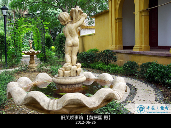 ????英國領事署所在的河濱公園是梧州市第二座公園,位于梧州三江匯合處西北岸的白鶴山上。白鶴山又名珠山、鶴崗。傳說在西漢,梧州城內“棲仙之數”者,每晚凌云歸家,清晨乘白鶴到州城治事。太守欲學不成,翌日清晨令衛兵用旗桿掃打白鶴,使其不能下。乘鶴者氣憤沖霄而去,留下鞋一只,成為鶴奔岡。又相傳白鶴山因山青水秀,郁郁蔥蔥,引來無數白鶴,晨曦初露時在這里逗留嬉戲,晚霞升起時乘著彩云而歸。一日來了一對仙鶴,落地之后變成白鶴仙和仙童,在此落觀修道。因此,白鶴山的“鶴岡返照”成了梧州古八景之一。1930年7月,市政府呈準辟為公園。1931年3月,舉行開幕典禮,名曰“河濱公園”。1932年,領事署旁豎有“還我河山”石碑,敘述梧州人民反帝斗爭驅逐英領事人員和購回領事署建筑、建立河濱公園的經過。