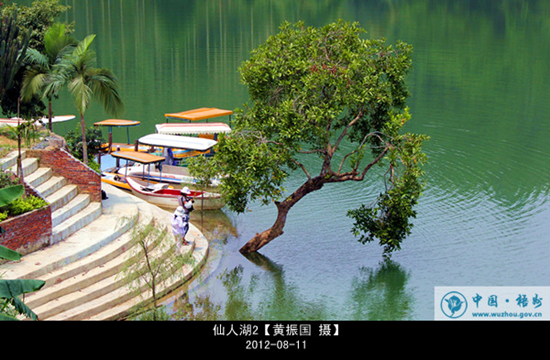 ????仙人湖景區(qū)位于夏郢鎮(zhèn)思委盆地北勝村,距梧州市區(qū)20多公里。地處思委盆地,北部靠近天洪嶺林場(chǎng),原名三合口水庫,是一處天然湖泊。湖面長(zhǎng)約3.8公里.寬100~300米,由北勝的大吉沖、細(xì)吉沖、八仙潭三大群山峽谷的三股溪瀑匯流而成。