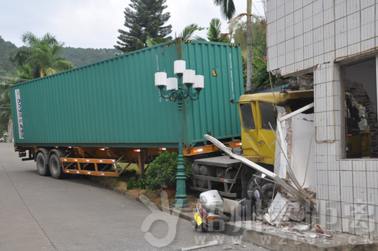 據(jù)司機和值班人員介紹,當(dāng)時貨車正從廠區(qū)開出,廠區(qū)出口為一條斜坡,廠區(qū)門口為一條比較繁華的道路。在下斜坡是,貨車剎車突然失靈,貨車司機緊急情況下為避免沖出道路造成更大事故,把方向打向了左邊的綠化帶來使車輛制動,但由于車輛還存在一定的車速和慣性,車輛在綠化帶滑行了一段時間后仍無法停止,徑直撞上了值班室。所幸的是值班員反應(yīng)迅速,及時逃出,未造成更大的人員傷亡。