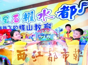 ????振興小學老師張虹是這件作品的指導老師之一,她告訴記者,“聚寶盆”是由六位老師和六位學生共同制作完成的,大家按照最初的創意去做,在制作過程中,老師和學生根據查閱的資料,一點一點地增加創意,一步一步的完善作品。像聚寶盆上的彩虹橋、著名特產,在最初的想法中是沒有的,都是大家在制作過程中共同想出的創意點。彩虹橋兩邊的建筑模型,是由老師拿著相機在實地拍攝,然后和學生一起通過打印裁剪而成。