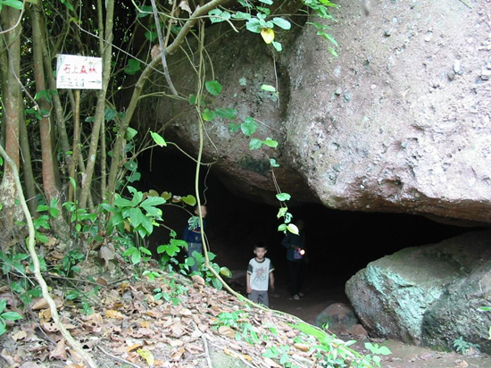 ????在山腳下,有七塊大石排成一排,構成七子團圓的景象,由于石頭大部分被藤蔓遮蓋,加上旁邊草木阻擋視線,無法看得清楚。七子石底部是個石洞,里面有泉水流出,洞中間有一塊石頭,活像一只海龜在產蛋,只露出它的頭部,半個身體還埋在土里。石洞群的石洞大概有七八個,還有通天洞、三足鼎立、石上森林等。