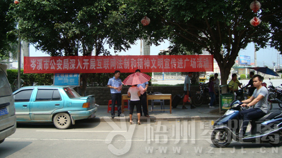 梧州零距離網訊(通訊員 林耀永)11月12日,岑溪市公安局網監中隊在小廣場以互聯網法制和精神文明宣傳為主題,為深化推進和諧警民關系活動的一項重要內容部署謀劃,采取開展互聯網法律法規宣傳和咨詢;講授和傳播網絡安全防范知識;開展打擊網絡違法犯罪活動成果展示;播放網安專題片、宣傳片等影視資料等其他宣傳活動。