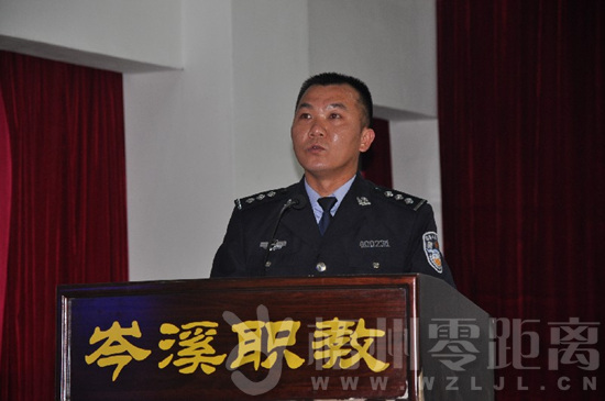 梧州零距離網訊(通訊員 林耀永)11月14日下午,梧州市公安系統“我心中的公安英雄”“我身邊的愛民模范”先進事跡報告會在岑溪市職教中心舉辦,報告會通過播放專題片與報告形式,由3位來自梧州市公安基層的優秀民警代表石檢深、朱少華、周博文為岑溪職中學生做了先進事跡報告,岑溪市職中師生800余人聆聽了報告。岑溪市公安局政委黃云龍,岑溪市職中副校長鄧達勇等領導出席了會議。