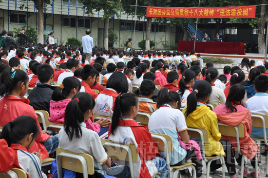 梧州零距離網訊(通訊員 莫黎)為貫徹黨的十八大精神,營造“健康、文明、和諧、平安”的校園環境, 11月19日上午,長洲公安分局組織民警深入龍新小學開展“送法進校園” 活動。民警用通俗易懂的語言、生動貼切的案例開展法制教育,給全校300多名師生送上豐盛的“法制大餐”。