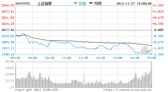 ????這是滬指自2009年2月以來首次收盤于2000點下方,創近46個月新低。