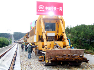 ????南廣鐵路廣西段北流河大橋至廣東大山頭隧道進口段的128公里的正線鋪軌任務由中鐵一局承擔。下一步,中鐵一局將繼續往廣東方向鋪軌,計劃2013年完成廣東段208公里的鋪軌任務。(閉初健)