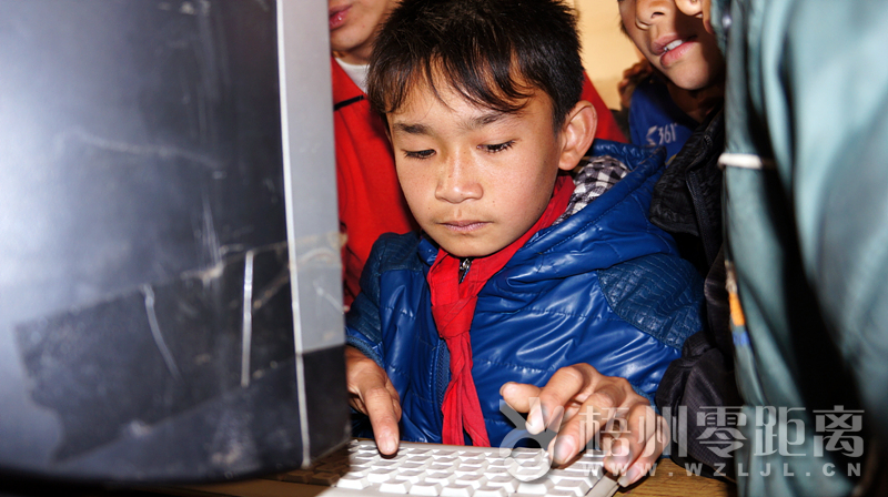 黎寨小學的學生嘗試在電腦上打字。黃祎婧/攝