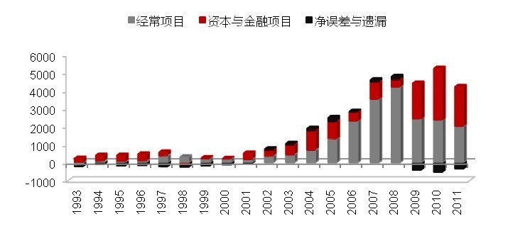 ????由于MPK的加速衰退,使得進入2012年后,中國已經連續兩個季度錄得顯著的資本項目逆差。而在過去20年中,中國僅有1998年年度錄得資本項小額逆差(-67億美元),其他時間都保持著雙順差。
