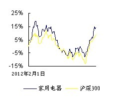 ????從申萬(wàn)23個(gè)行業(yè)對(duì)比來(lái)看,2012年家電行業(yè)累計(jì)上漲15.84%,僅次于房地產(chǎn)和金融服務(wù)板塊,明顯領(lǐng)先于其他20個(gè)板塊,驗(yàn)證我們此前對(duì)2012年持續(xù)看好的判斷。今年1月以來(lái),家電行業(yè)累計(jì)上漲9.51%,仍穩(wěn)居第三,僅次于醫(yī)藥生物和金融服務(wù)板塊,與我們12月對(duì)行業(yè)今年1月配置攻防兼具的判斷相符。