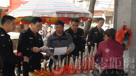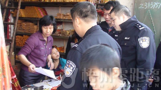 梧州零距離網訊(通訊員 龍翔 林耀永)為吸取“2.1”連霍高速公路一運輸煙花爆竹的大貨車爆炸事故的慘痛教訓,2月3日上午,岑溪市公安局治安大隊長劉其宏率治安大隊、城中所、城北所民警共20多人組成行動組,對岑溪市北山路非法經營煙花爆竹的攤點進行安全整頓。