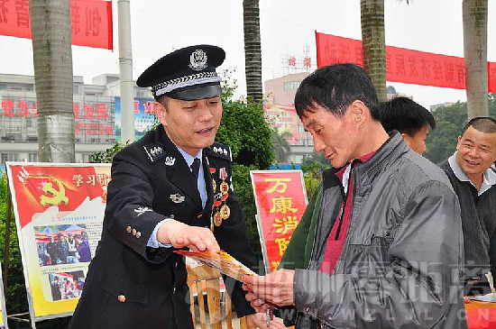 本次活動以大力宣傳黨的十七大以來,岑溪市政法系統(tǒng)全面落實中央和省市決策部署,積極服務發(fā)展第一要務,全力履行維穩(wěn)第一責任,切實保障人民安居樂業(yè)等方面的新成效;順應人民群眾對公共安全、司法公正、權益保障的新期待,不斷提高人民群眾安全感和滿意度,努力提高政法工作親和力和公信力;扎扎實實為群眾辦實事、辦好事,大力實施法治惠民工程,切實解決群眾反映的突出問題等方面為主題,通過設置法律咨詢點,擺放精心準備的發(fā)生在群眾身邊的真實、生動的案例展板,通過發(fā)放宣傳單、現(xiàn)場接受咨詢等豐富多樣的形式向人民群眾宣傳我市公安機關“公正司法為人民”的執(zhí)法理念。