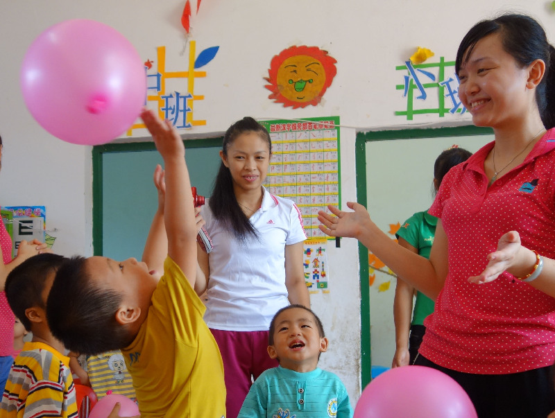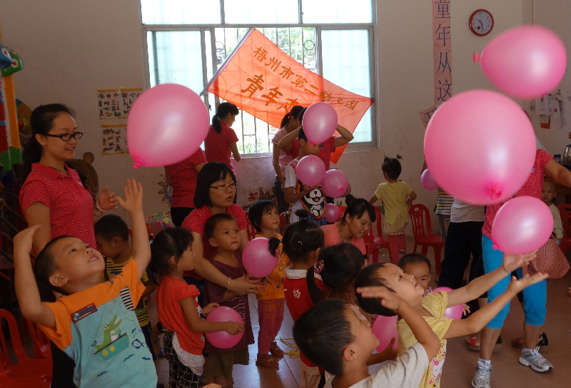 ????雖然三貴村的孩子們很樂于參與,但是互動活動開展得還是“有點困難”。在進行拋氣球游戲時,剛發到孩子們手上的粉紅色氣球,就被他們視作珍寶。用宋杏的話說,“那是緊緊地抱著”。宋杏沒想到,一個城里孩子不以為然的氣球,竟成了村里孩子的“寶貝”。最后,在老師的指引下,孩子們漸漸被帶入到游戲的氣氛當中,手中的氣球也成了最好的玩具,他們開心地歡呼著,笑得合不攏嘴。