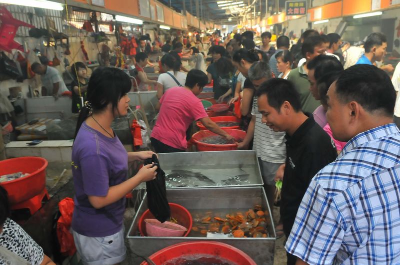 9月19日上午,在南中市場水產行,人們正選購水產品。 當天是中秋佳節,市區各大農貿市場熱鬧非凡,市民們到市場選購食材,張羅一頓豐盛的晚宴與家人團圓。李鴻榮 攝