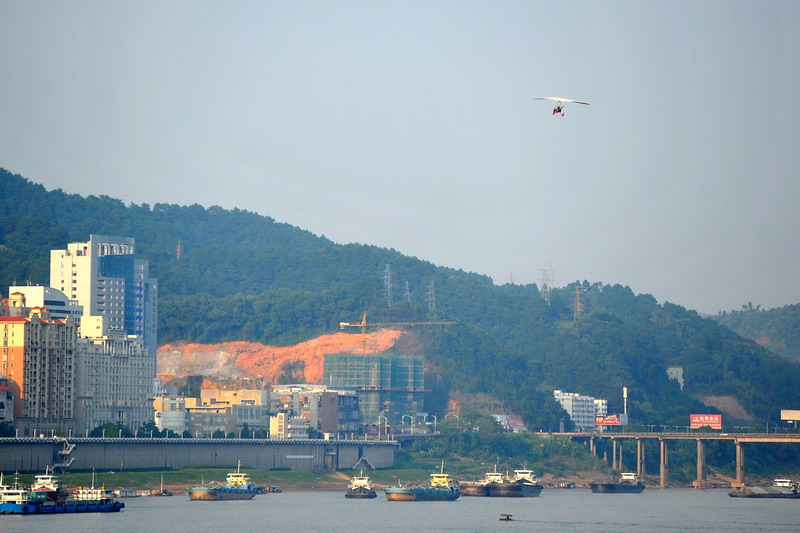 ????9月20日,愛好者駕駛動力三角翼在西江上空盤旋。何鎏/攝