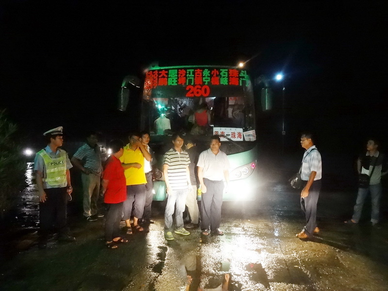 ??? 9月24日22時許,藤縣公安局交警大隊巡邏執勤民警在南(寧)梧(州)二級公路藤縣富吉治超站查獲一輛超載21人的跨省長途大客車,并實行卸客轉運。 李偉明 攝