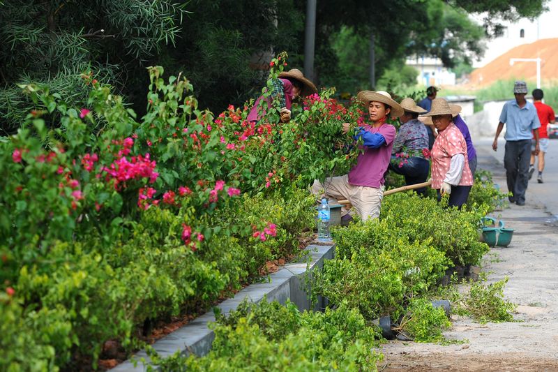 ?9月29日,綠化工人正在桂江二路沿線擺設(shè)綠化植物。該綠化帶工程在原防撞帶基礎(chǔ)上建設(shè)了約半米寬的綠化帶,種植綠色植物,既起到觀景綠化效果,也發(fā)揮了保護防撞帶的作用。 西江都市報記者 何鎏/攝