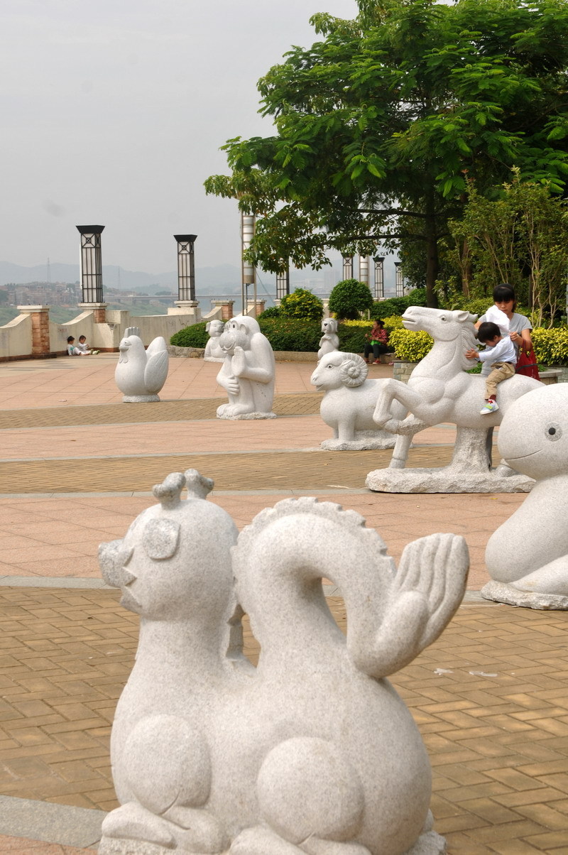 ????9月30日,市民在我市西堤公園一帶新添置的十二生肖石雕群間游玩。目前,西堤公園正逐步增添新景致,前往漫步、游玩的市民慢慢感覺到了環境正不斷變美。蒙紹松/攝