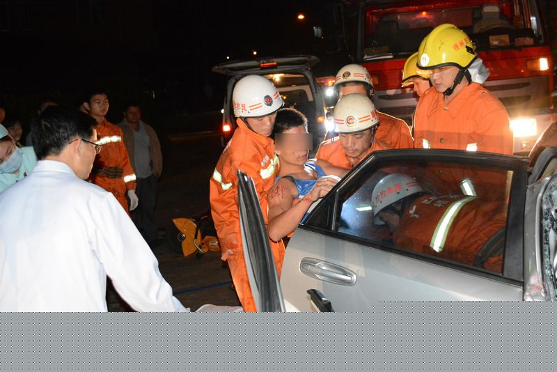 ????當(dāng)日凌晨1時(shí)15分,救援人員趕到現(xiàn)場(chǎng),現(xiàn)場(chǎng)一輛車(chē)牌為桂DK80××的小轎車(chē)和桂D367××貨車(chē)對(duì)向緊緊貼在一起,小轎車(chē)司機(jī)被困于駕駛室,車(chē)身嚴(yán)重變形。兩車(chē)側(cè)方停放著一輛桂D263××的貨車(chē),該貨車(chē)車(chē)頭右下角受損,車(chē)內(nèi)無(wú)人員受困。根據(jù)現(xiàn)場(chǎng)情況,消防官兵立即攜帶撬棍等裝備深入小車(chē)內(nèi)部,一邊安撫受困司機(jī),一邊展開(kāi)營(yíng)救。1時(shí)22分,小車(chē)司機(jī)從后門(mén)被救出并立即送往醫(yī)院救治。