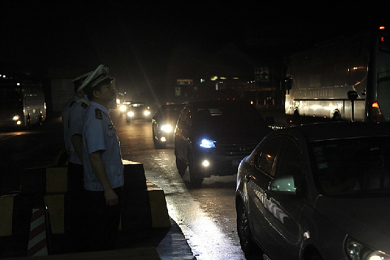 ??? 10月1日凌晨,梧州交警支隊支隊長唐劍鋒、副支隊長何家森親臨桂東收費站,增援高速警力,一線指揮調控過往車輛,確保過往車輛暢通。